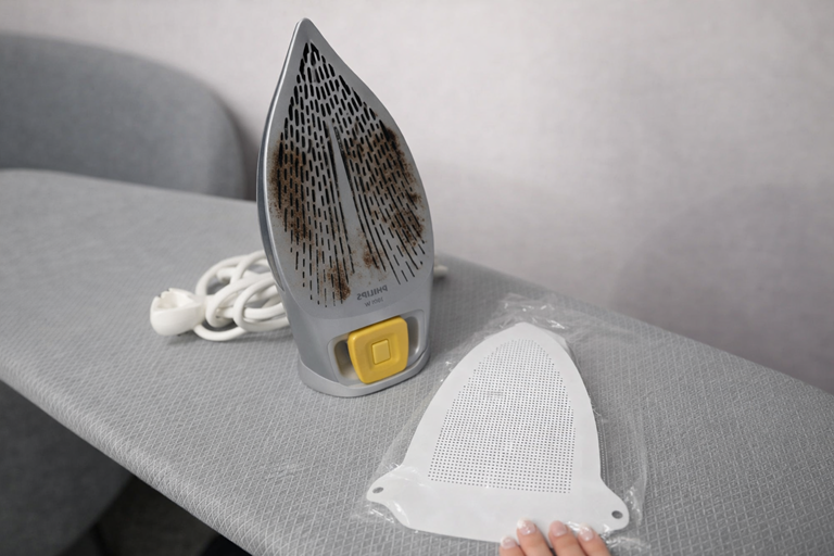 Фактически это барьер между подошвой утюга и внешними загрязнениями. Пользователь экономит на очистителях и продлевает срок службы устройства.